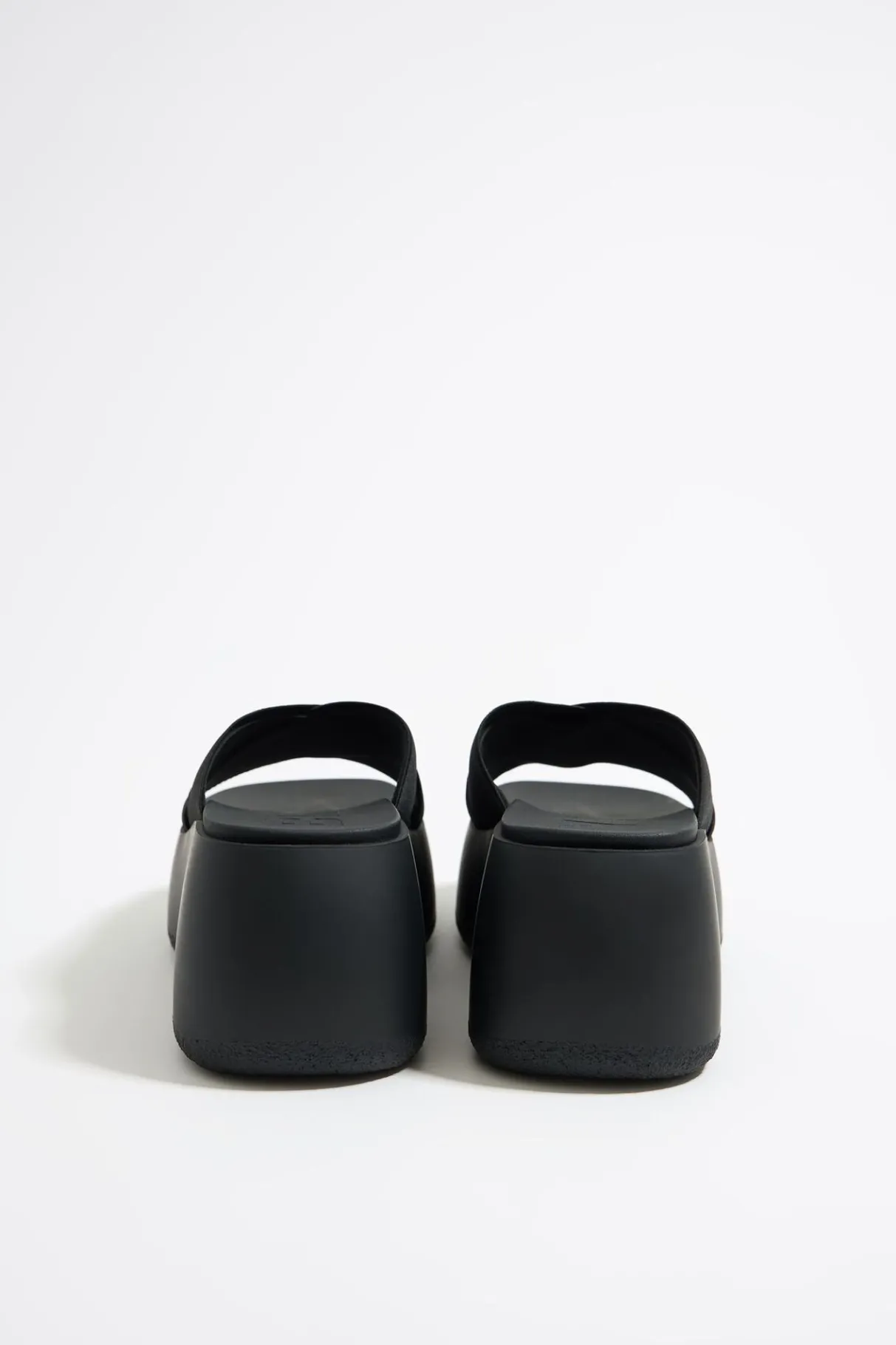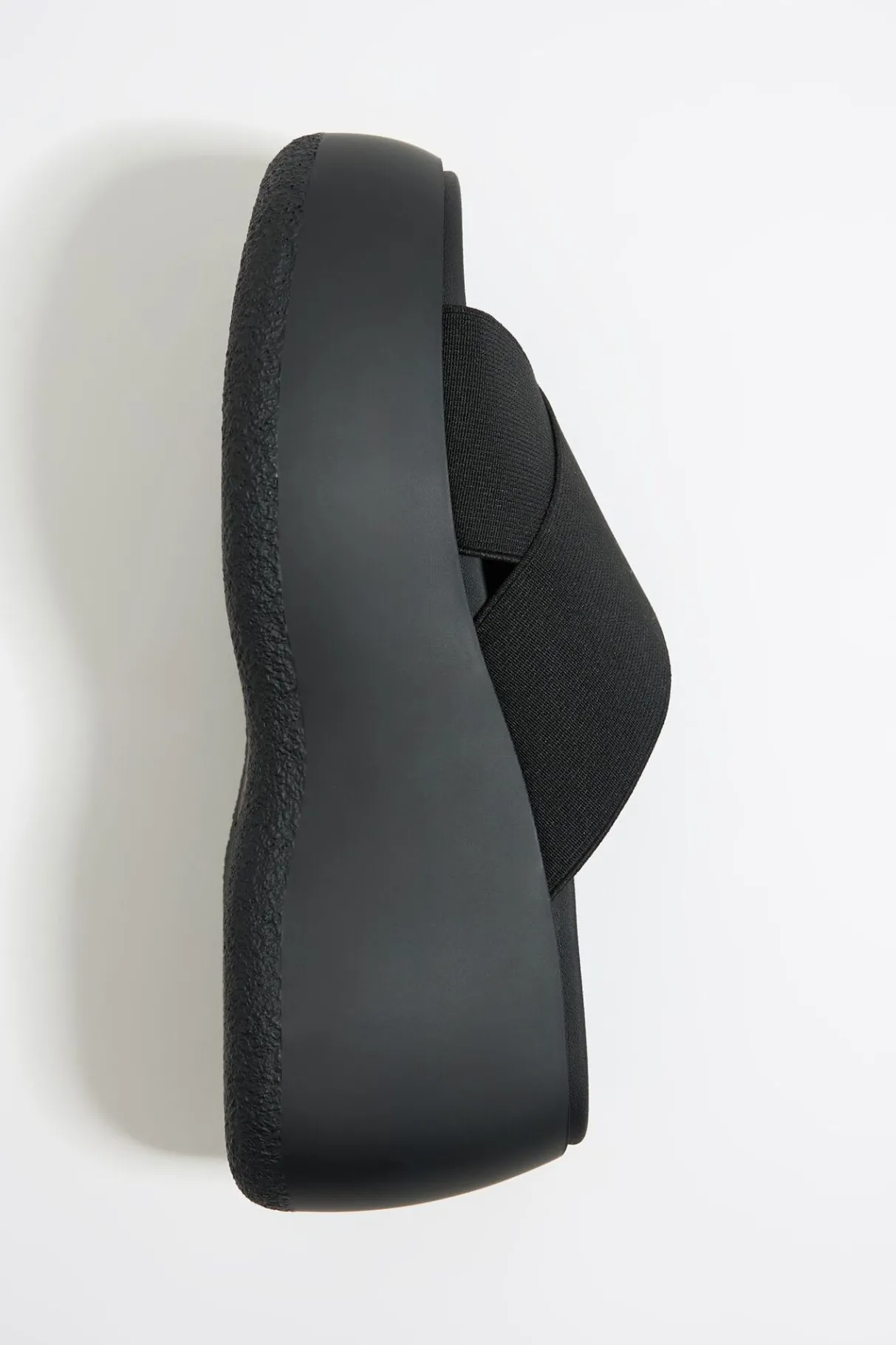 Sandalia De CuÑA En Color Negro. Modelo De Tiras ElÁSticas Cruzadas Con Forro De Piel. Plantilla Con Logo Y Suela Inyectada Personalizada.