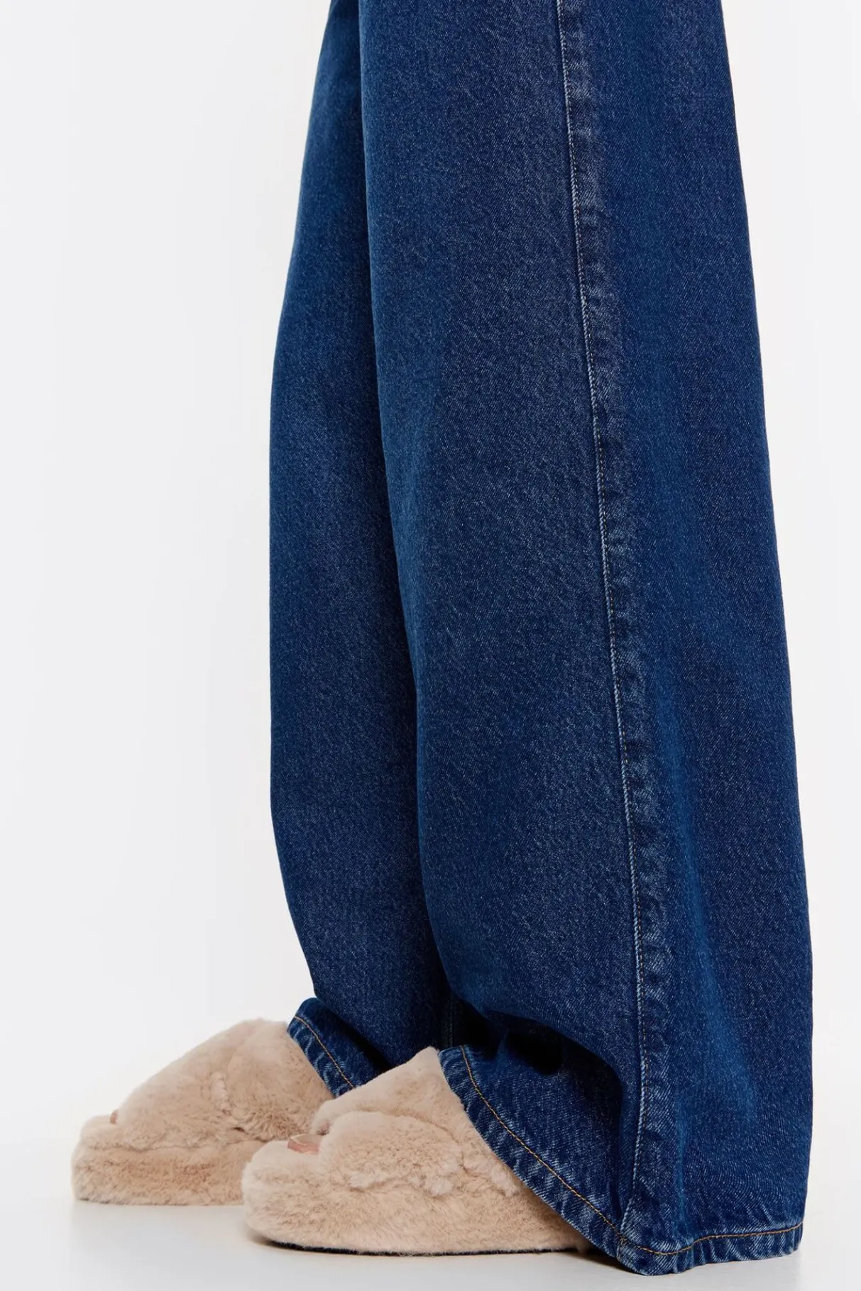 Sandalia Plana De Pelo SintÉTico En Color Beige. Etiqueta Con Logo Bordado En La Planta Y Suela Logotipada.