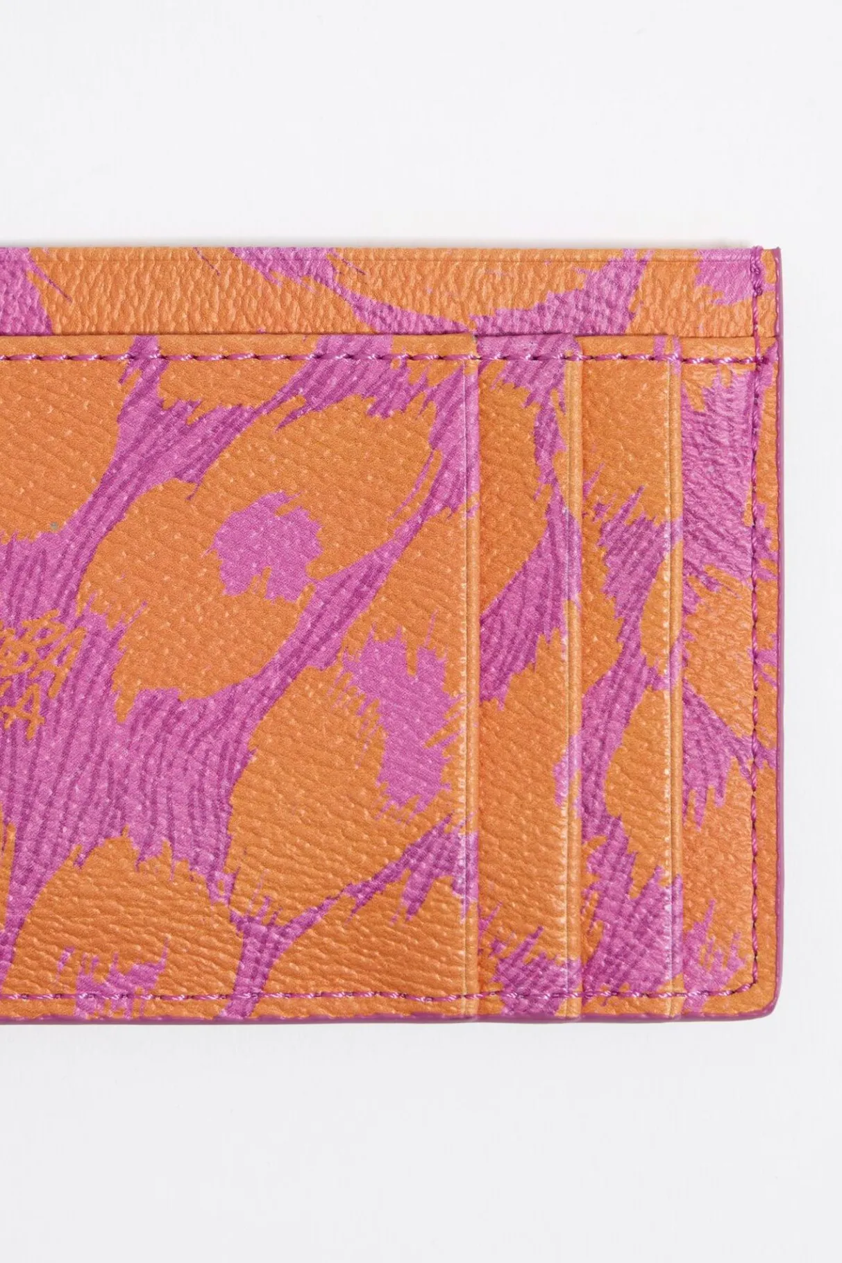 Tarjetero De Textura Caviar Con Print Leopard En Color Lila. Exterior Personalizado Con Logo MetÁLico.