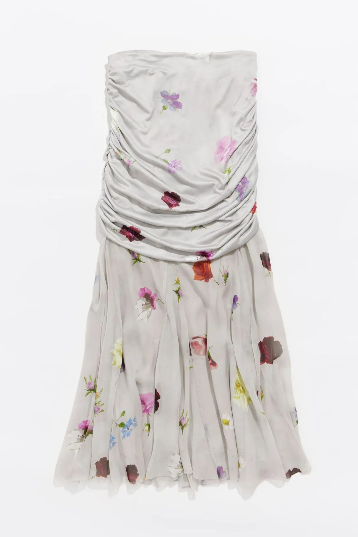 Falda Midi De Lyocell Seda Con Print Flowers En Color Gris. Modelo De Corte Ajustado, Capa Superior Fruncida En Los Laterales Y Capa Inferior Con Vuelo.