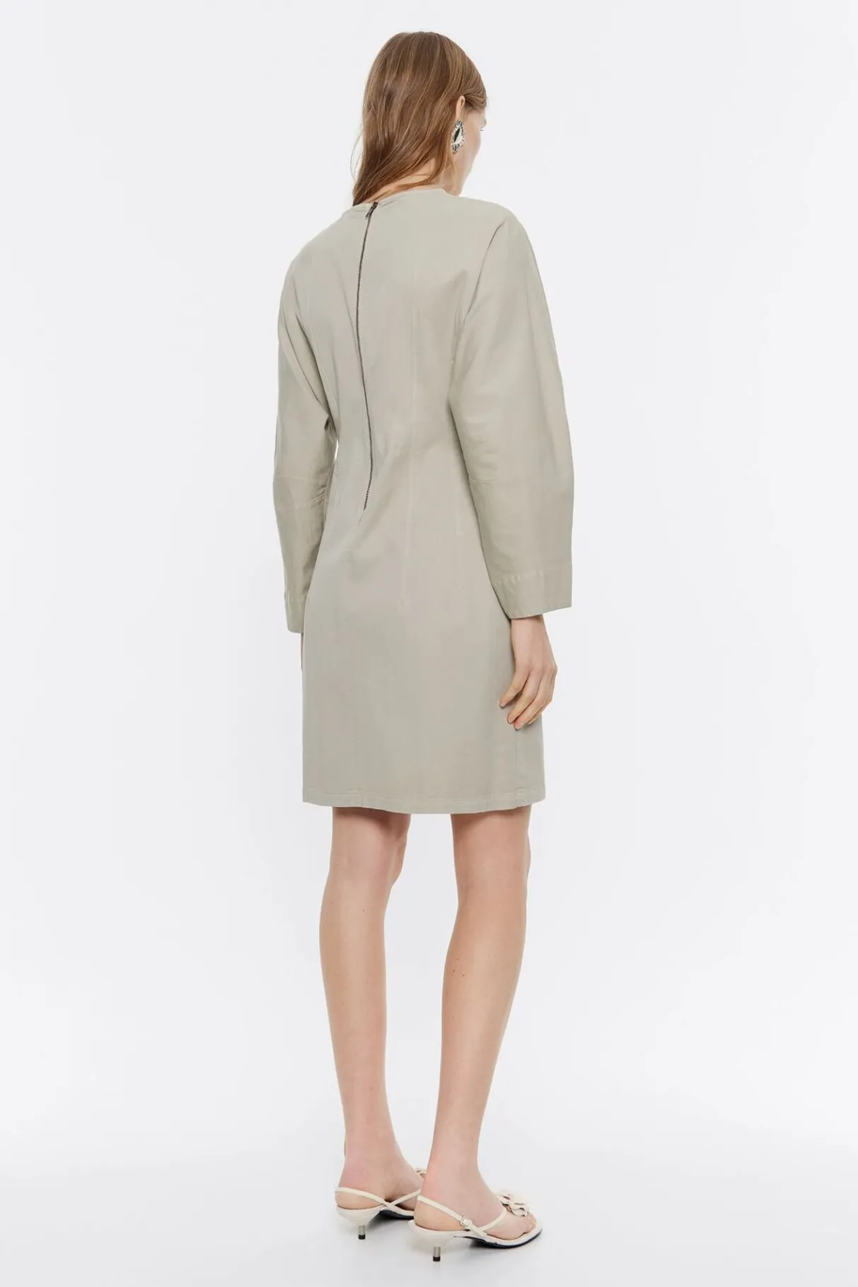 Vestido Mini De AlgodÓN En Color Verde Claro. Modelo De Corte Ajustado En Cintura, Cuello Caja Con Abertura Diagonal Y Manga Larga Con Volumen. Pespuntes En Toda La Prenda.