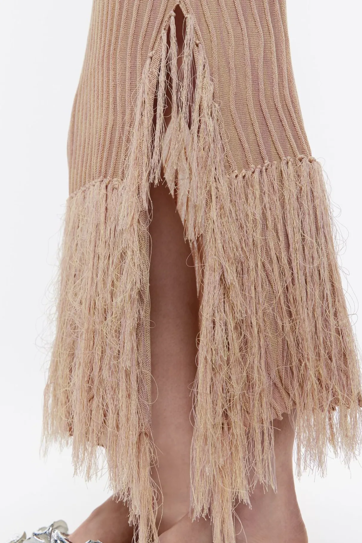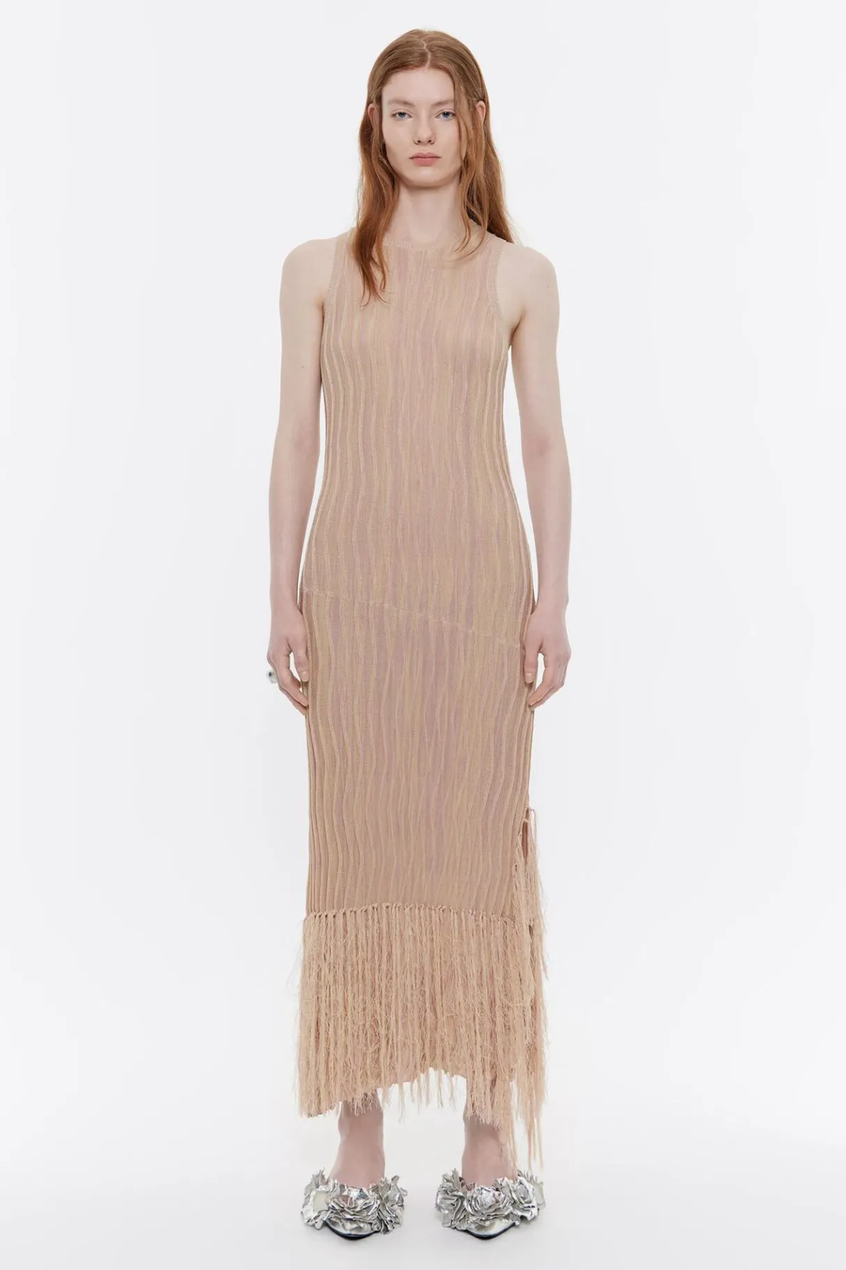 Mujer BIMBA Y LOLA Vestidos Y Monos<Vestido Punto Flecos Rosa Claro
